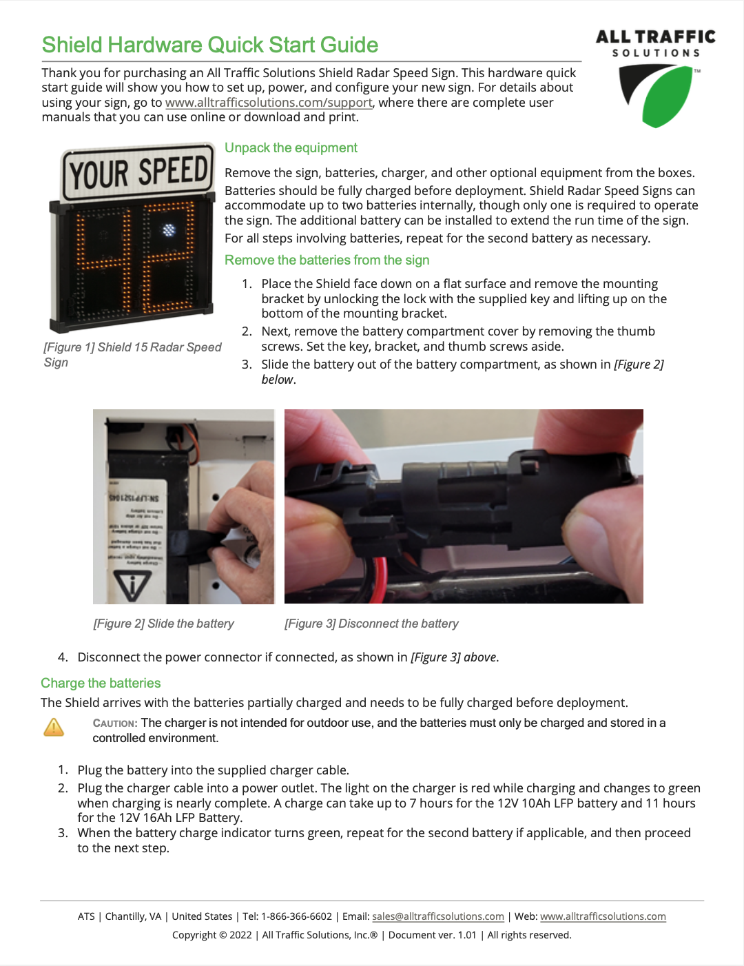 This Hardware Quick Start Guide is meant for anyone who needs to set up a Shield Radar Speed Sign. It provides an introduction on how to set up, power, and configure your new Shield Radar Speed Sign, including the following:
