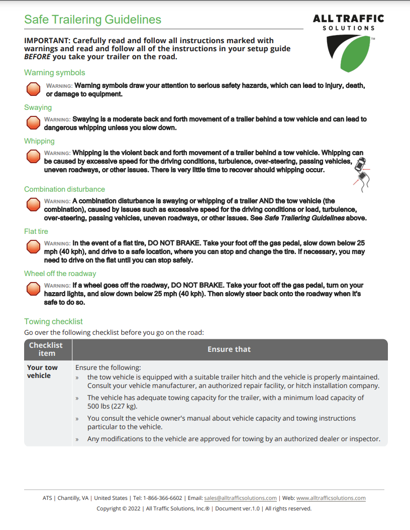 This guide is meant for anyone who is going to take their ATS trailer on the road. In this document you can overview the following: