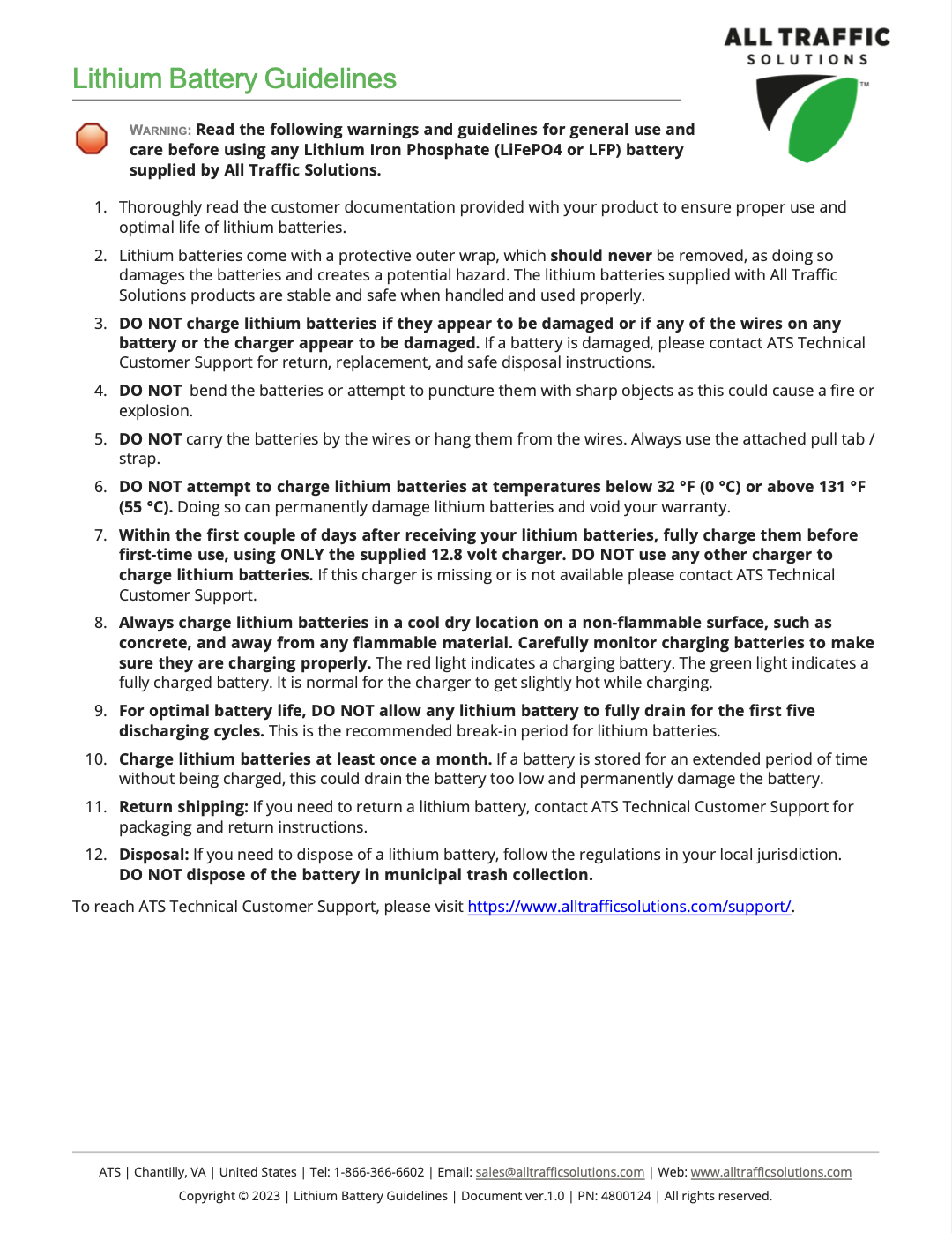 This guide is meant for anyone who is using any Lithium Iron Phosphate battery supplied by All Traffic Solutions.