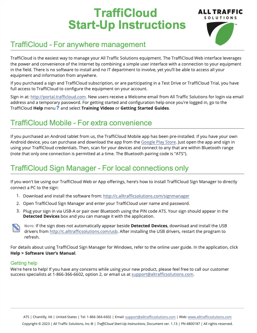 These Start-Up Instructions are meant for anyone who is using TraffiCloud to manage your All Traffic Solutions equipment. This guide will instruct you how to: