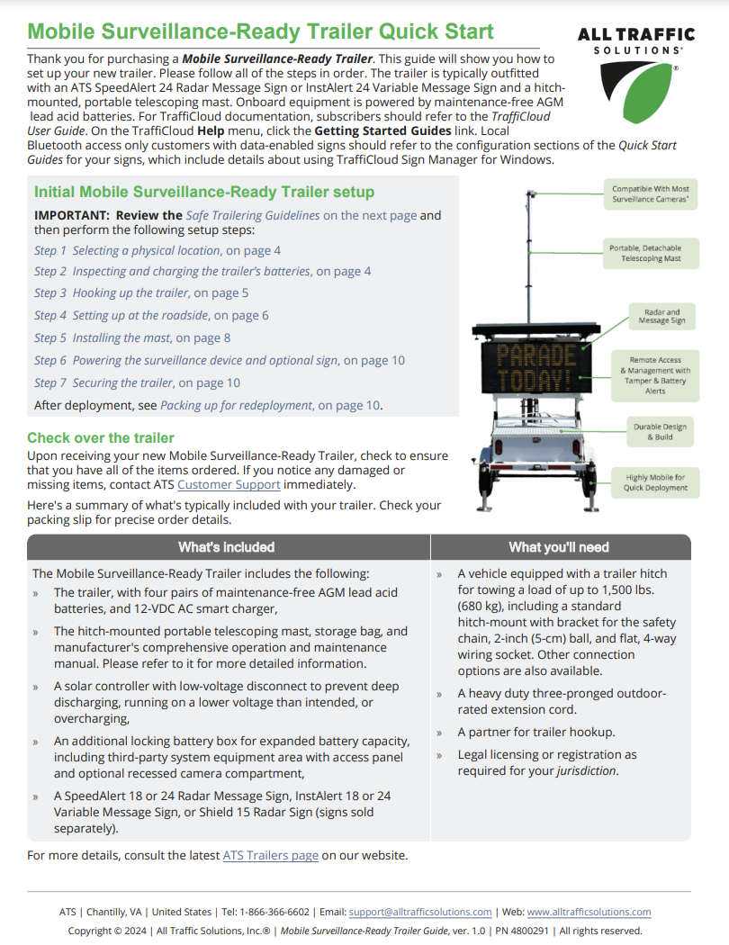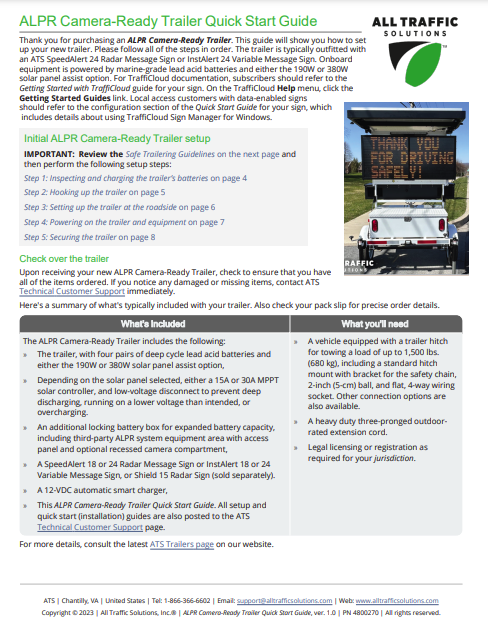 This Setup Guide is meant for anyone who needs to set up an ATS ALPR Trailer. It provides the following: