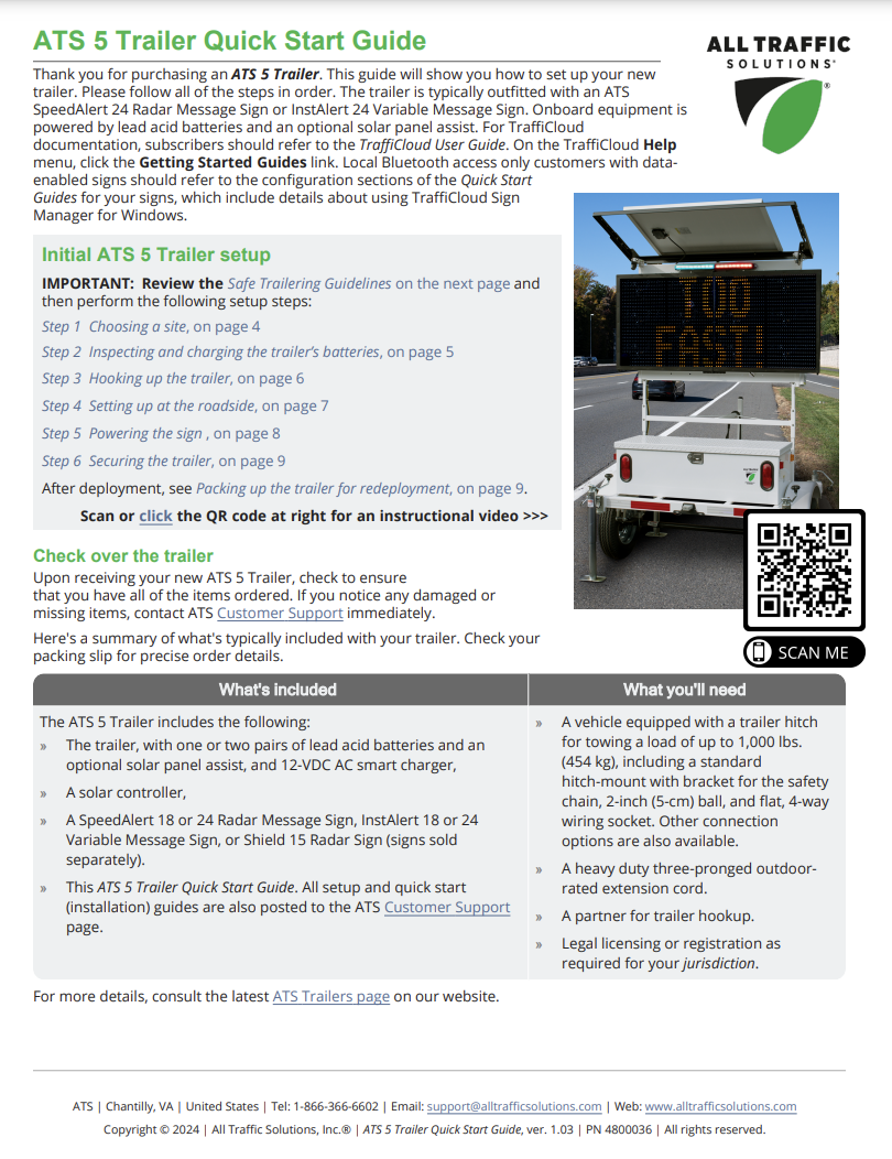 This Setup Guide is meant for anyone who needs to set up an ATS 5 Trailer. It provides the following: